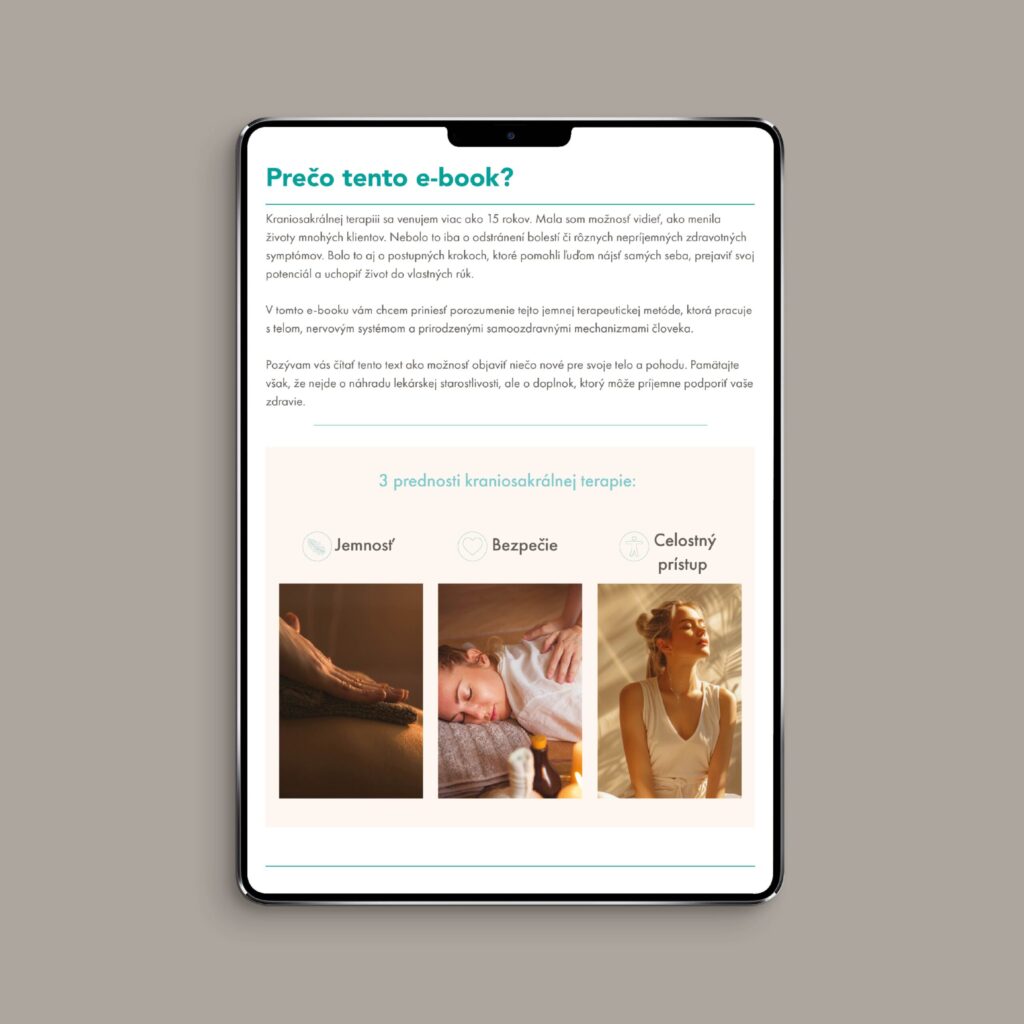 Klientka nás oslovila s cieľom zmodernizovať prezentáciu kraniosakrálnej terapie a priblížiť širšiemu publiku. Pôvodná stránka bola neprehľadná a chýbal jej jasný vizuálny jazyk. Cieľom bolo vytvoriť web, ktorý zrozumiteľne komunikuje hodnotu terapie, uľahčuje orientáciu a podporuje dôveru.